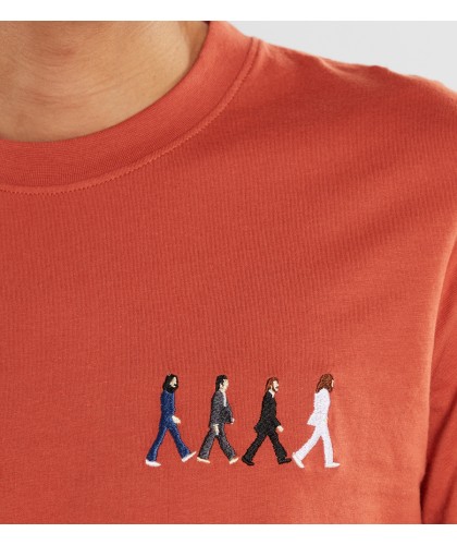 T-shirt bio brodé Beatles Abbey Road Terracotta DEDICATED