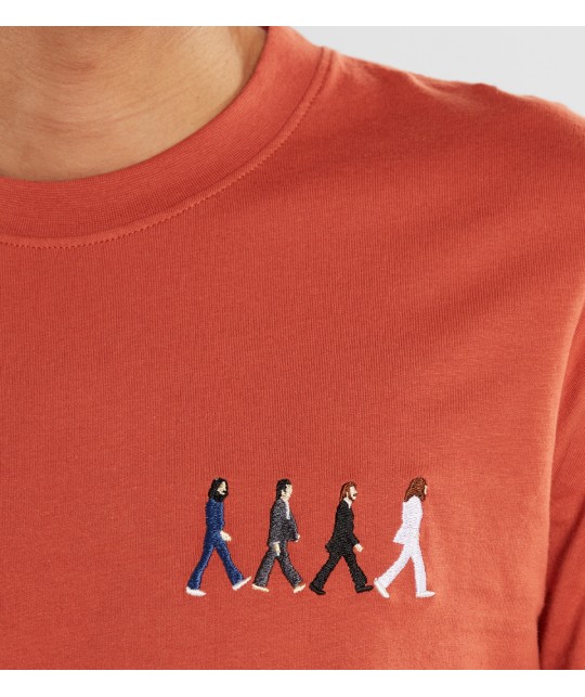 T-shirt en coton bio fairtrade rouille, broderie Beatles Abbey Road (licence officielle)