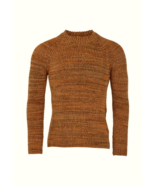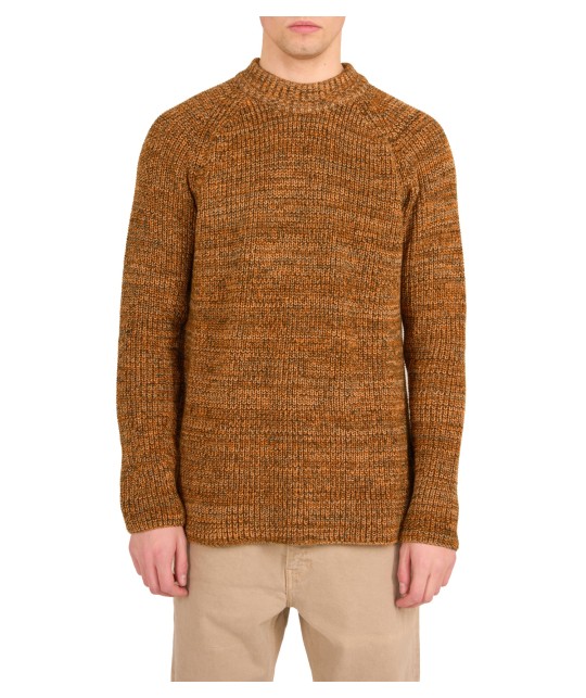 Pull mouliné vert orange en coton bio KNOWLEDGE COTTON APPAREL