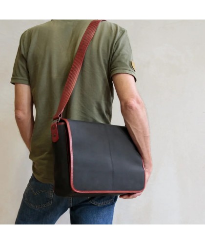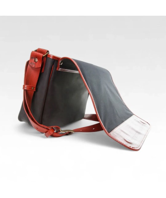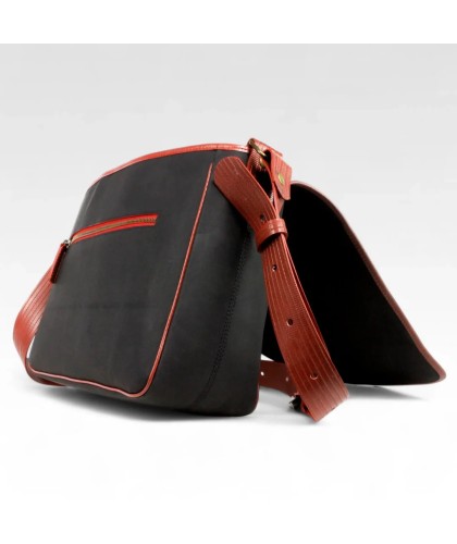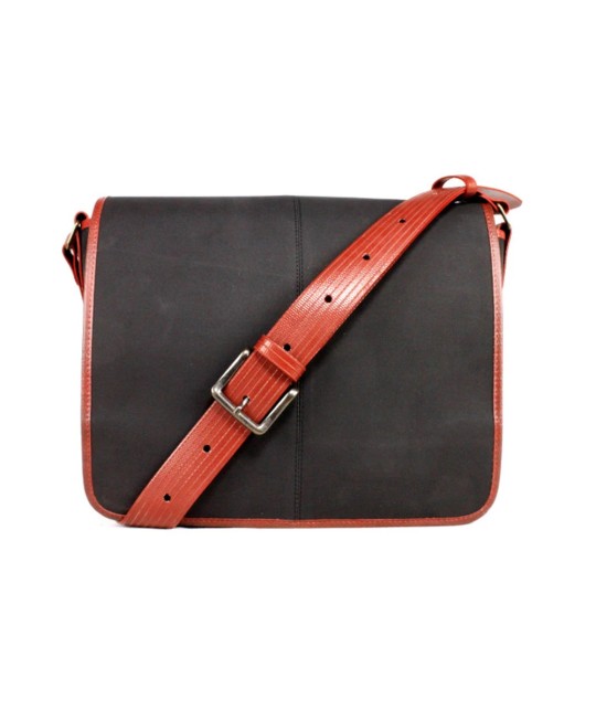 Shoulder bag made from upcycled printing blankets (rubber used in printing) and fire hose.