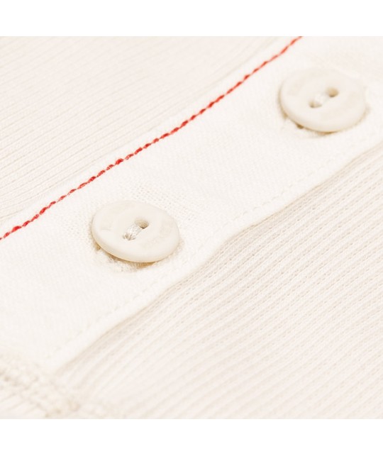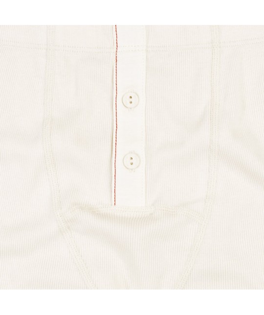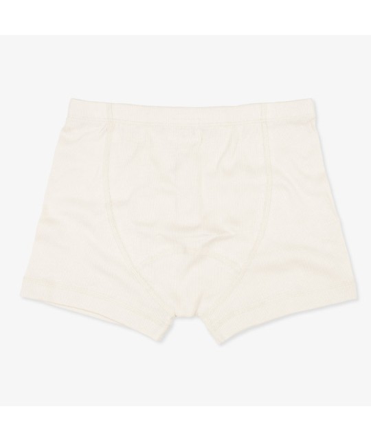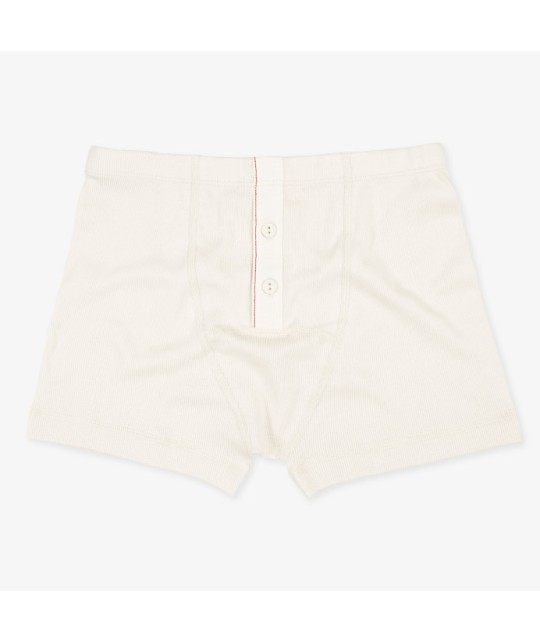 Offwhite boxer shorts in finely ribbed organic cotton jersey, with a narrow elasticated waistband, an off-white button placket made from a cotton-linen blend, featuring two buttons, and red topstitching. 96% GOTS-certified organic cotton, 4% elastane, made in Portugal.