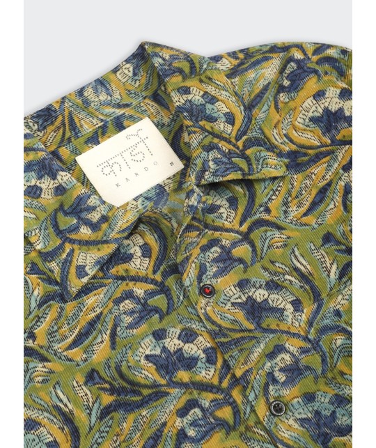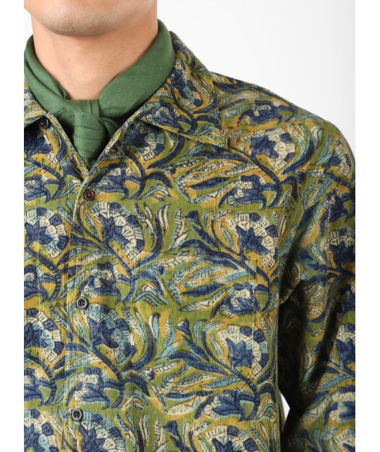 Fine cord shirt with all-over block print. 1 chest pocket. 100% cotton, ethically made in India.