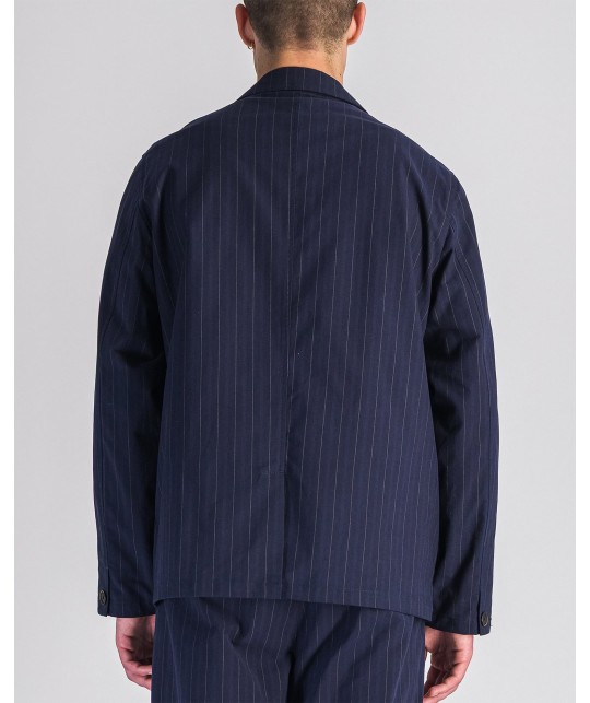 Navy striped jacket, relaxed fit. 99% cotton, 1% elastane (205 g/m²) made in Portugal