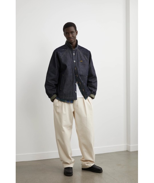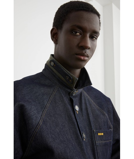 Oversized dry denim jacket with raglan sleeves