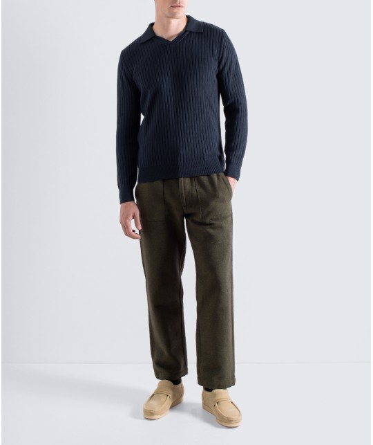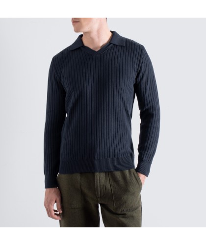 Navy Clifford Polo Cotton Sweater FAR AFIELD