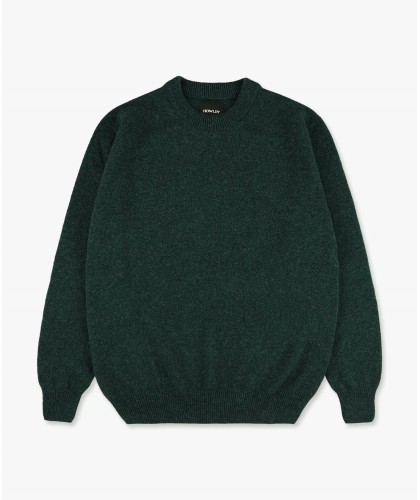 Ultra-soft green heather wool sweater with a fine ribbed crew neck. 100% Scottish wool, traditionally made in Scotland.