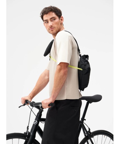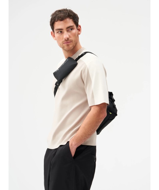 Sac bandoulière en polyester recyclé, entre banane et besace, à volume extensible, léger.