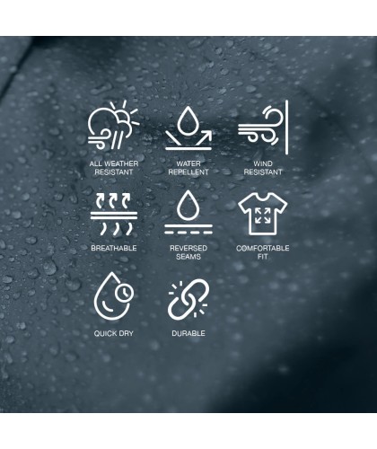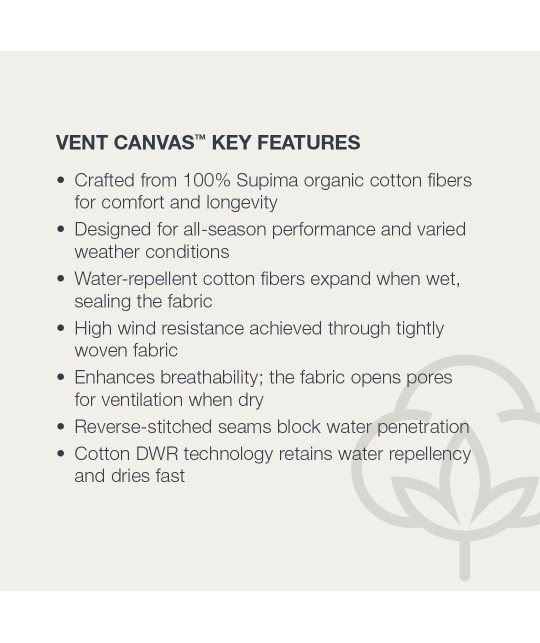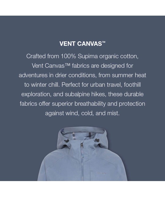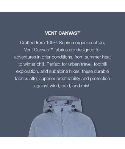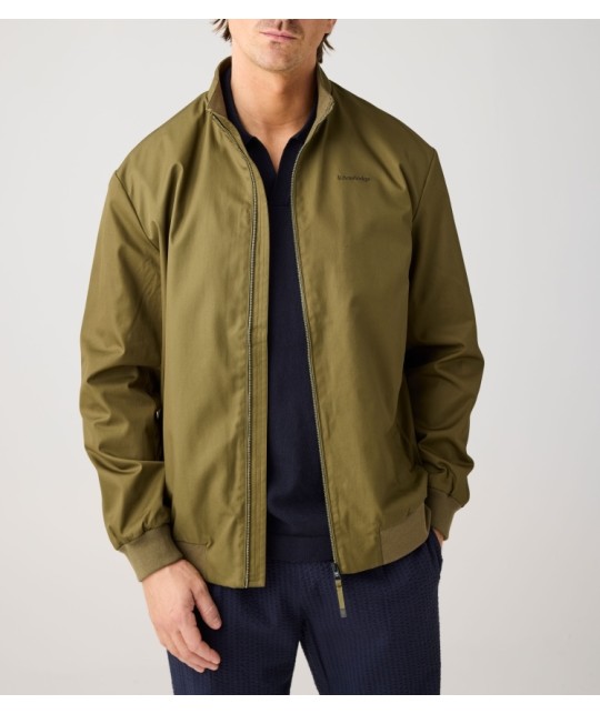 Navy blue cotton jacket. Made from Vent Canvas fabric: water-repellent, windproof and quick-drying, in organic Supima cotton. Features two side pockets and one zipped inside pocket.