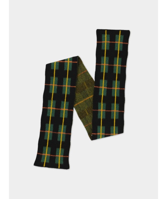 Brushed lambswool scarf, tartan pattern on black background. 200x20cm