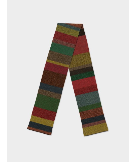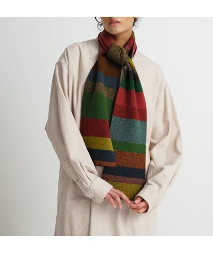 Multicolored jacquard knit scarf, tweed effect, ultra-soft lambswool. 155 x 16cm 100% Scottish RWS lambswool, GOTS-certified dyes.
