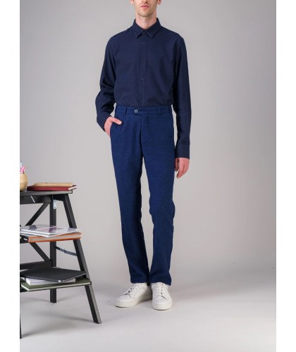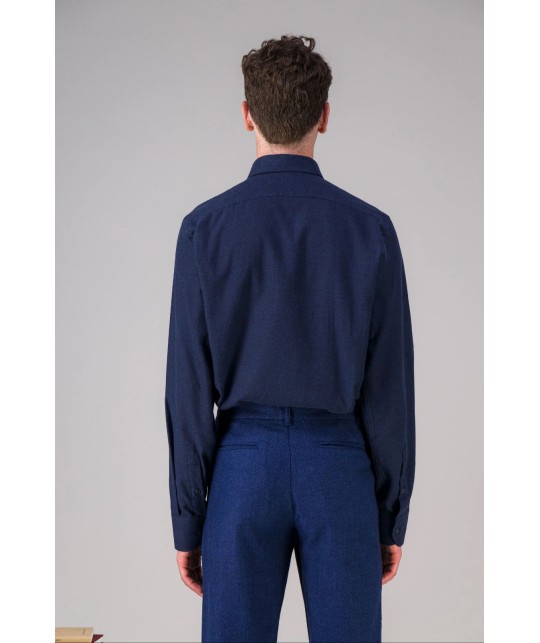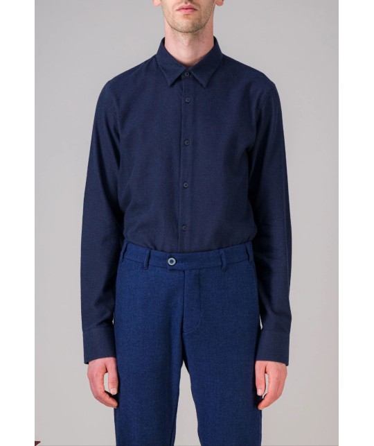 Blue organic cotton flannel shirt, slim fit. Hidden button collar. Corozo buttons. 100% organic cotton, made in Portugal.