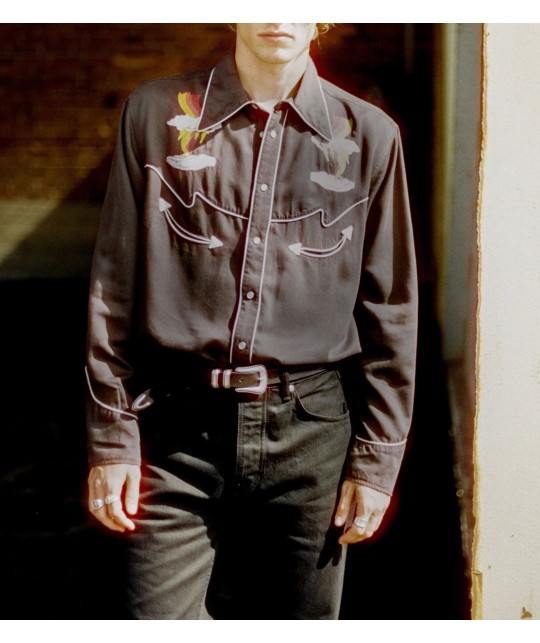 Chemise western noire en tencel (fibre écologique à base de bois). Boutons pressions.