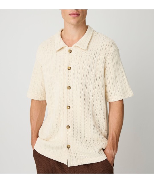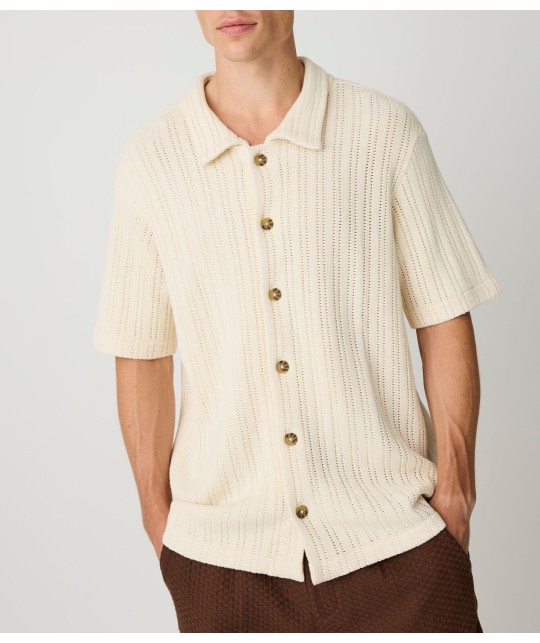Short-sleeved shirt in openwork ecru knit.