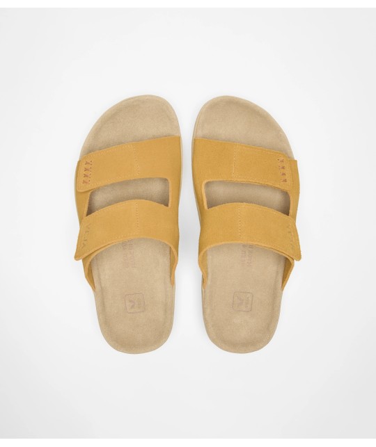 Sandals made from natural rubber, suede and other sustainable materials.