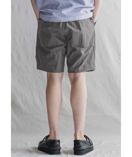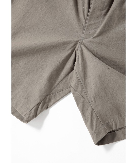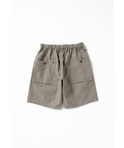 Short en coton texturé, taille élastiquée, cordon de serrage, braguette zippée. 2 grandes poches arrières boutonnées.