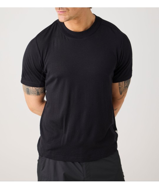 Black merino wool T-shirt. 100% RWS merino wool. Ethically made in China.