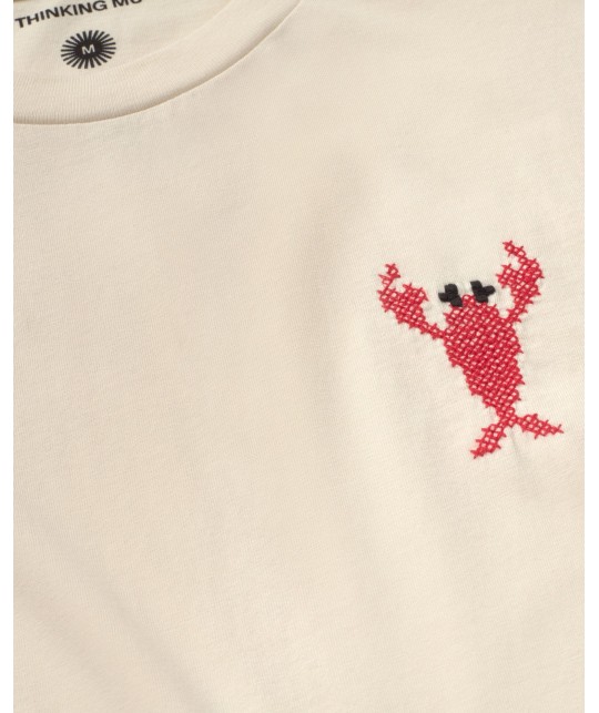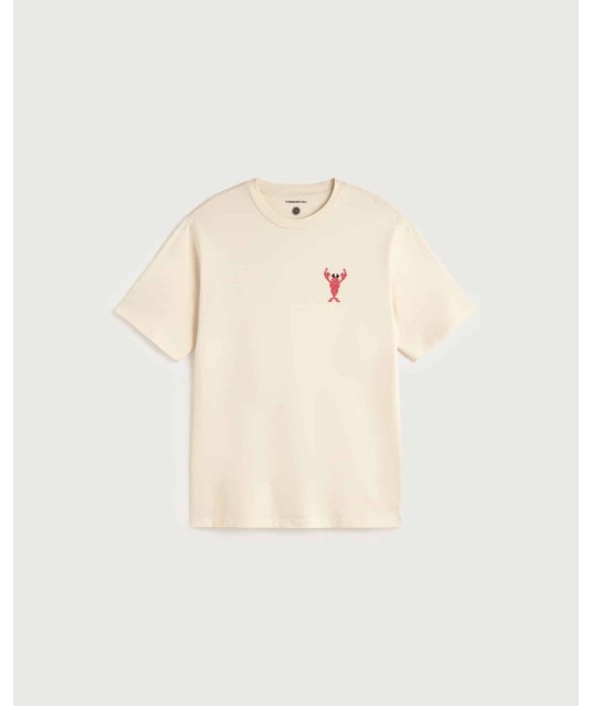 Natural-coloured organic cotton T-shirt with a lobster embroidery on the chest.