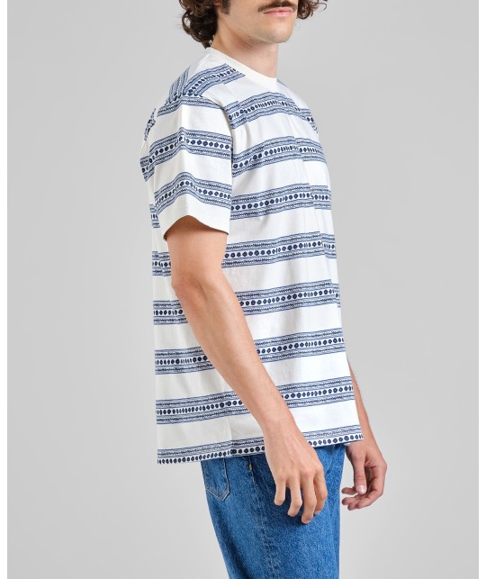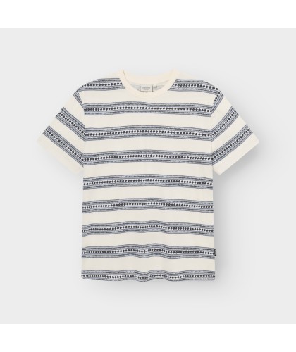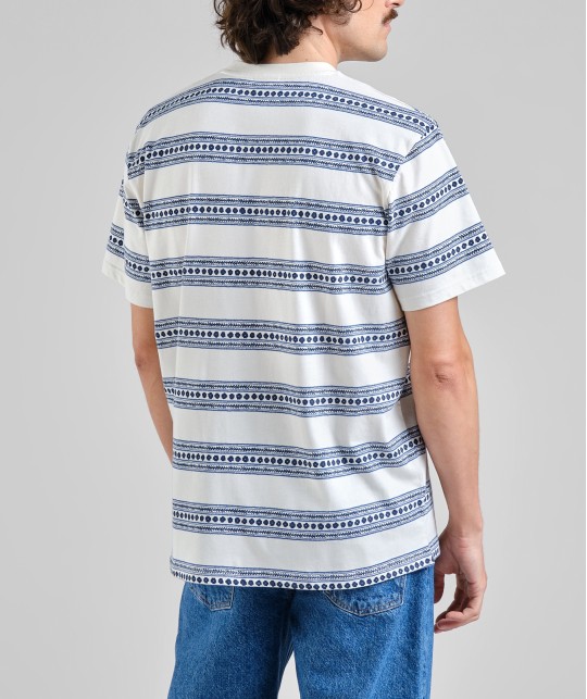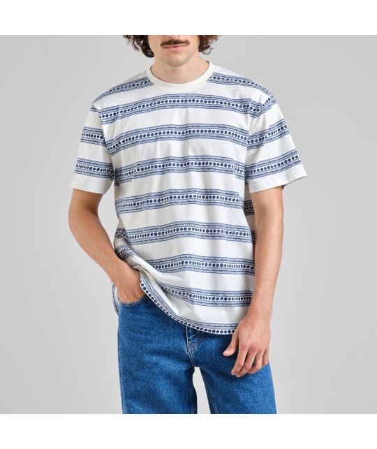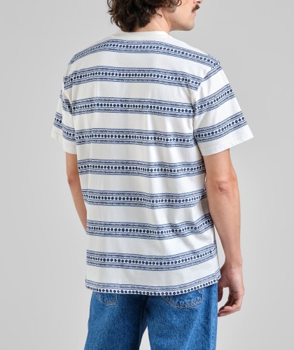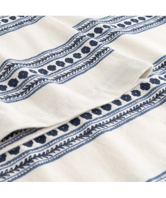 Off-white organic cotton T-shirt with blue floral stripes