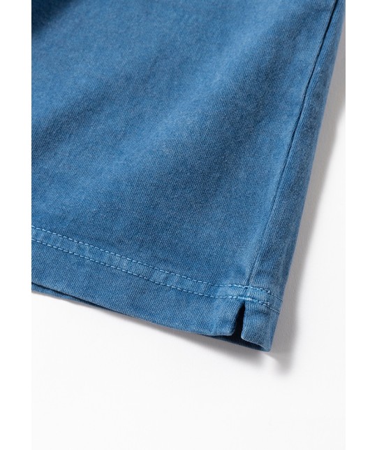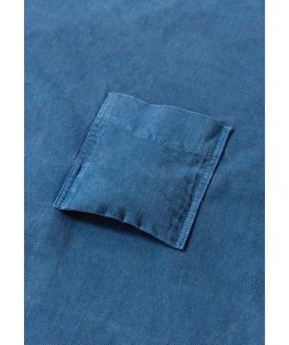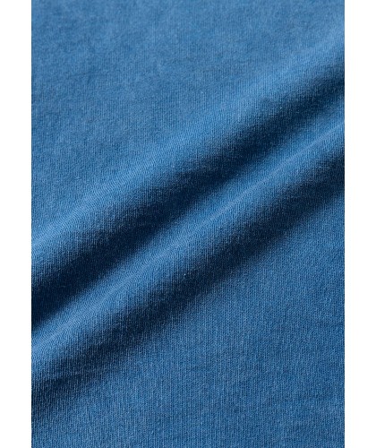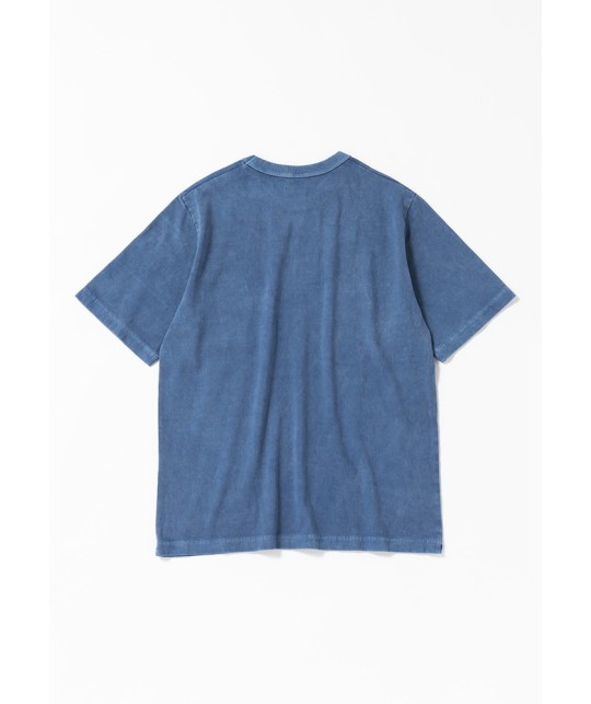 T-shirt à poche poitrine bleu indigo délavé en coton japonais épais.