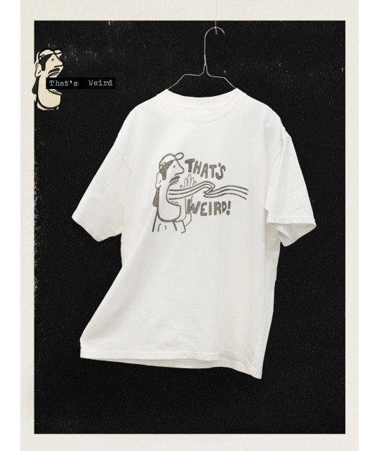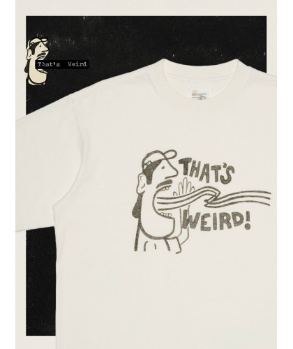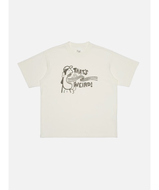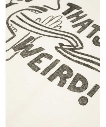 Loose fit tee in white organic cotton, featuring a “That's weird” print.