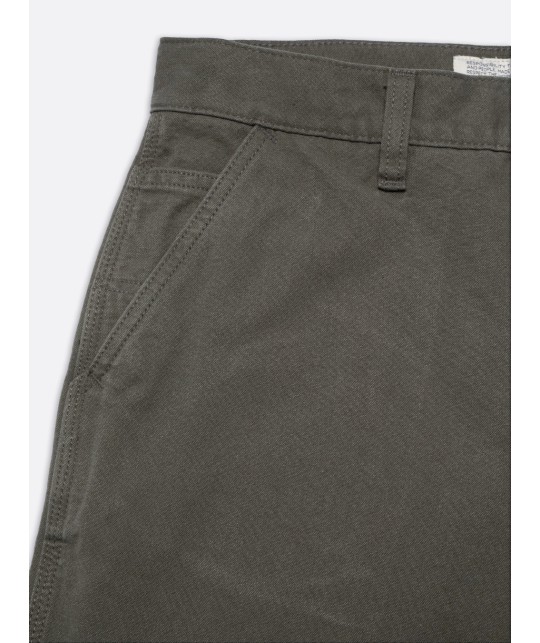 High-waisted, wide-leg pants in grey-green duck canvas. 100% organic cotton, ethically made in Tunisia.
