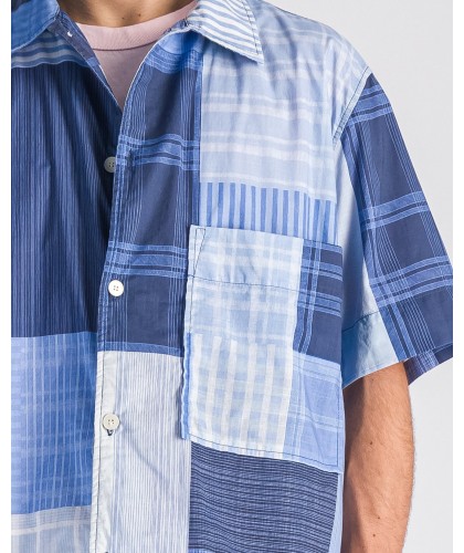 Chemisette en popeline super légère, imprimé patchwork dans les tons de bleu. 1 poche poitrine. Boutons en corozo. Coupe ample.
