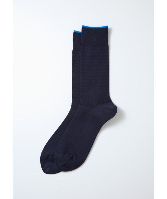 Chaussettes marine à tissage nid d'abeille, dont le relief apparaît quand on les porte. Très bonnes propriétés thermiques.