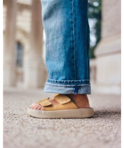 Sandale en caoutchouc naturel, suède et autres matériaux durables.