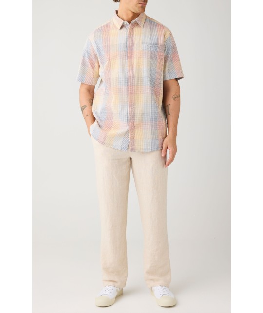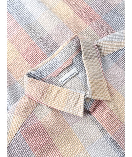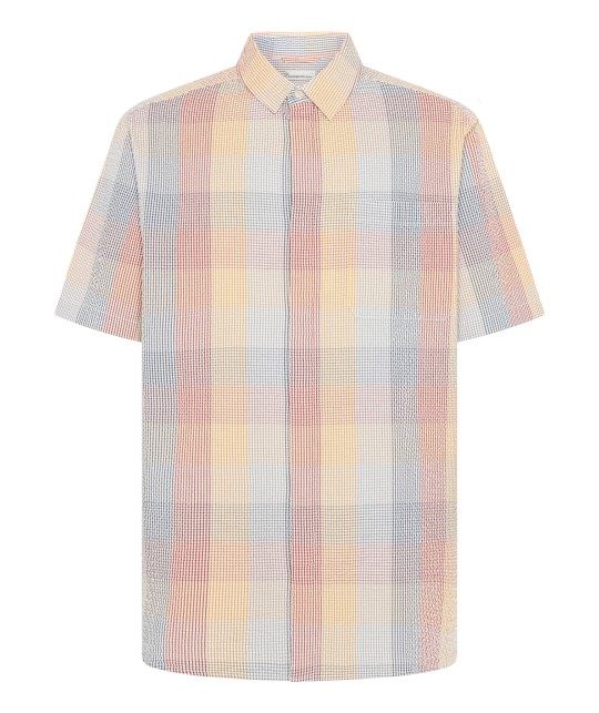 Chemise en seersucker à carreaux multicolores. Coupe relax, une poche poitrine.