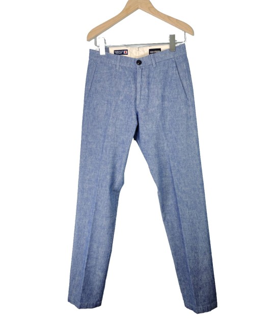 Pantalon en chambray bleu ciel de chez Kuroki (Japon).