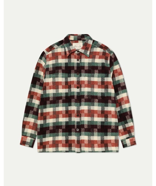 Surchemise épaisse en drap de laine à carreaux irréguliers multicolores. 2 poches poitrine.