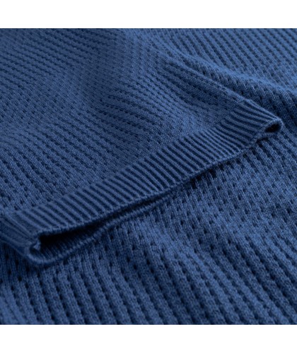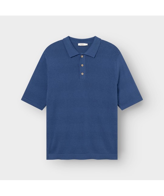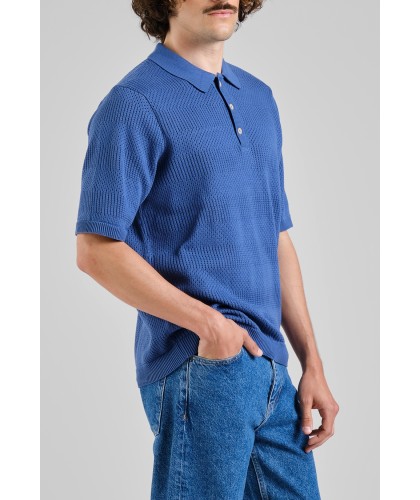 Polo en coton bio à texture perforée. 3 boutons en corozo.