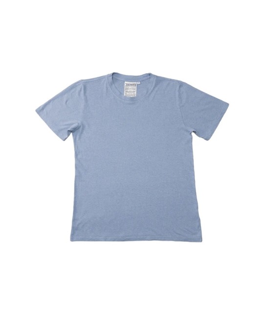 T-shirt chiné en chanvre et coton bio 5oz, teint à la pièce. Bleu ciel